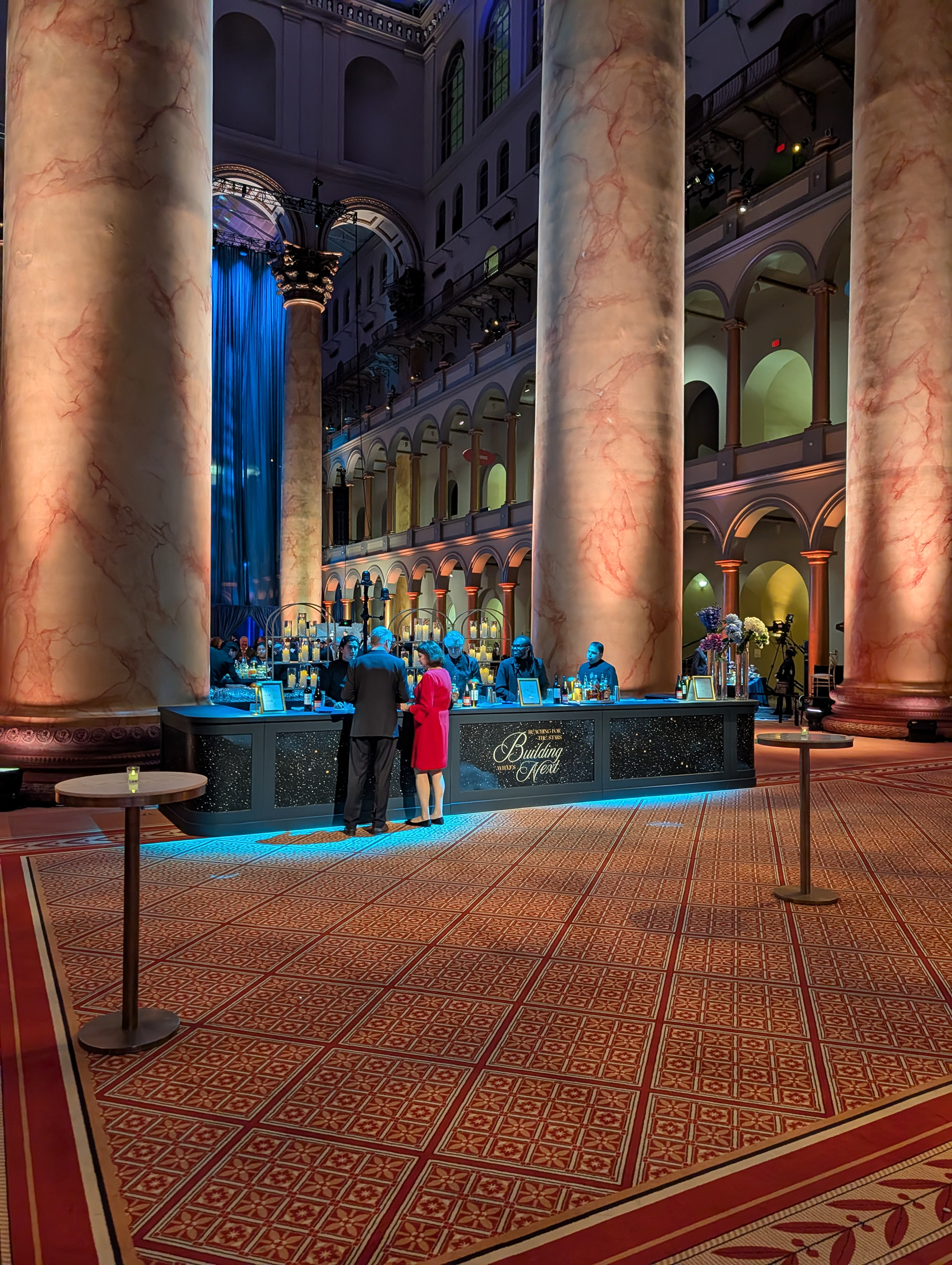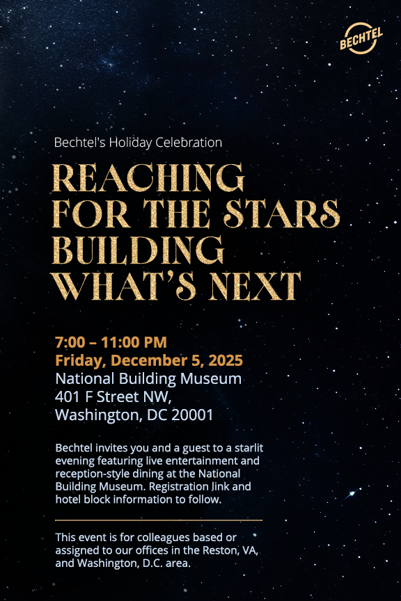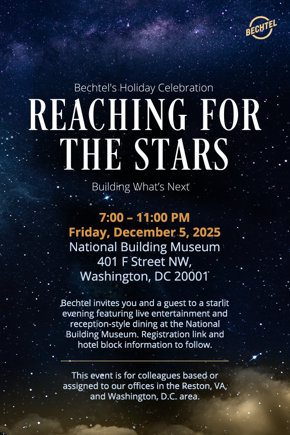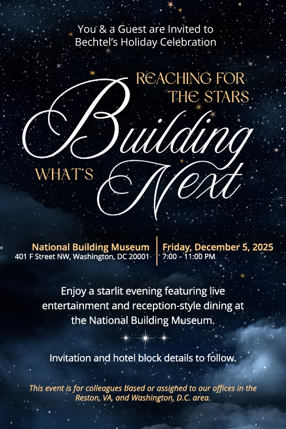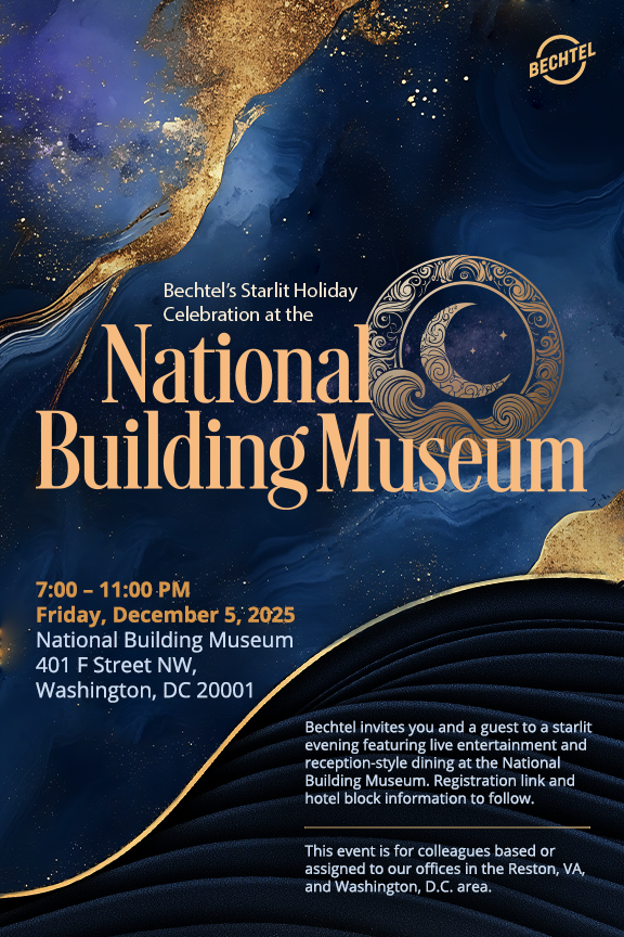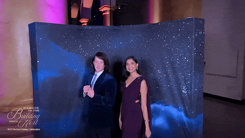 Bechtel's 2025 holiday party was an excursion into the starry night. Using the National Building Museum as its backdrop, a space with stunning grandeur and open verticality, the event was meant to convey a refined sense of elegance and provide a host of whimsical moments.